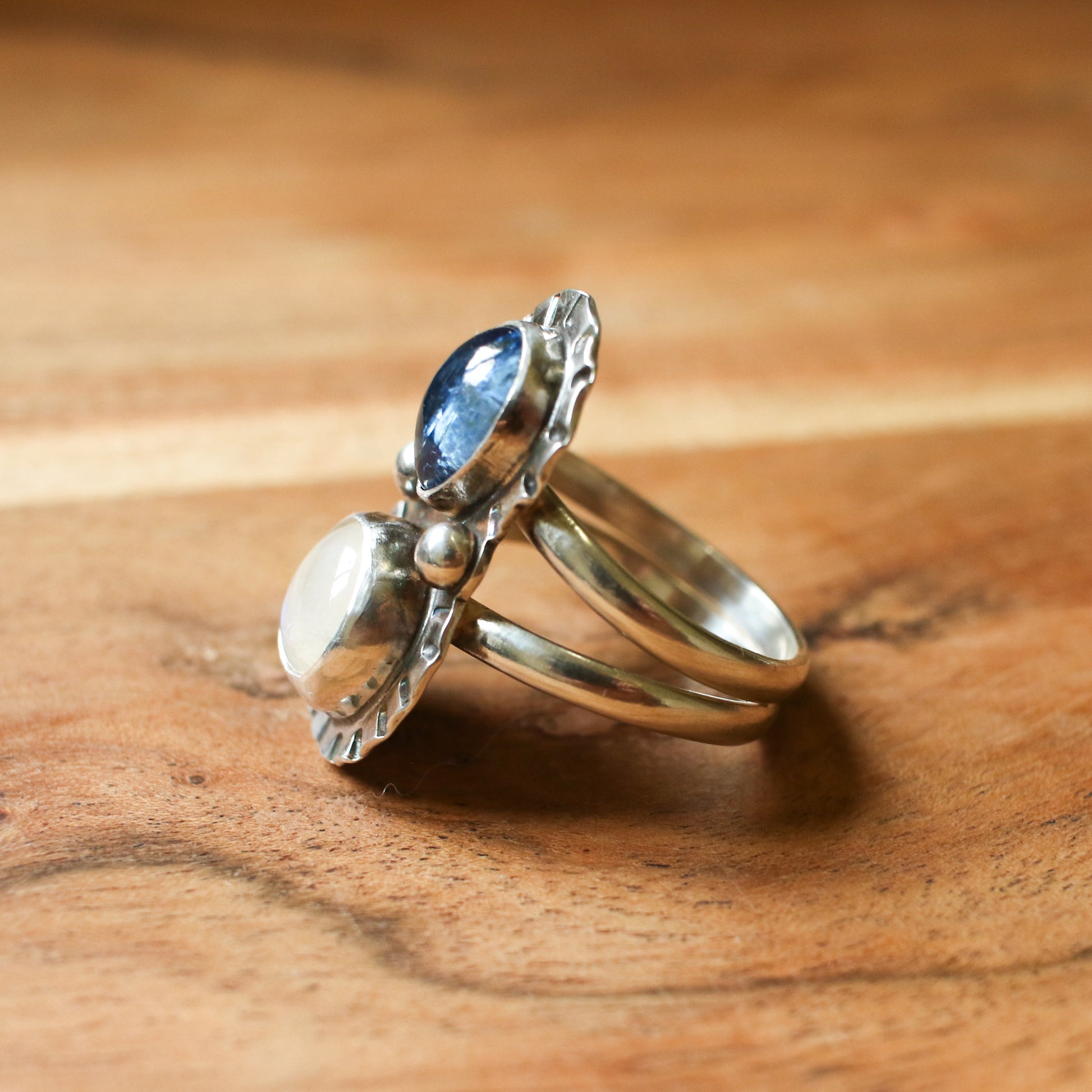 Kyanite & Moonstone Burst Statement Ring - Size 8.5