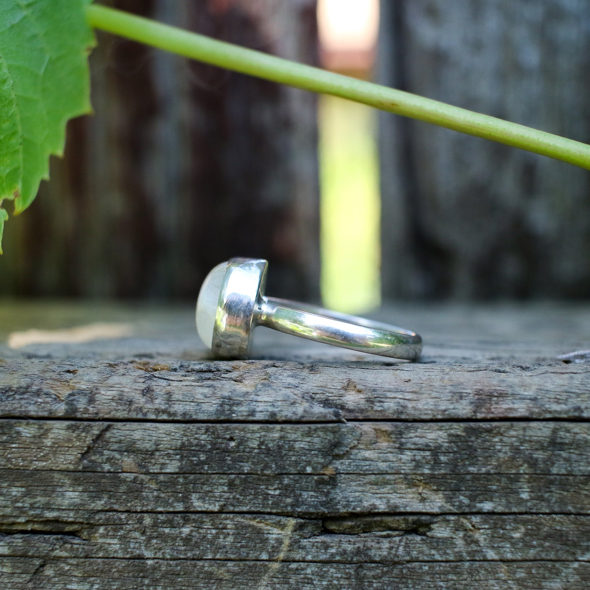 Handcrafted with care, this sterling silver ring features a captivating, color-shifting moonstone that catches the light and reflects your quiet strength. Its soft glow offers a subtle reminder to stay connected to your intuition, even in the midst of a full day.